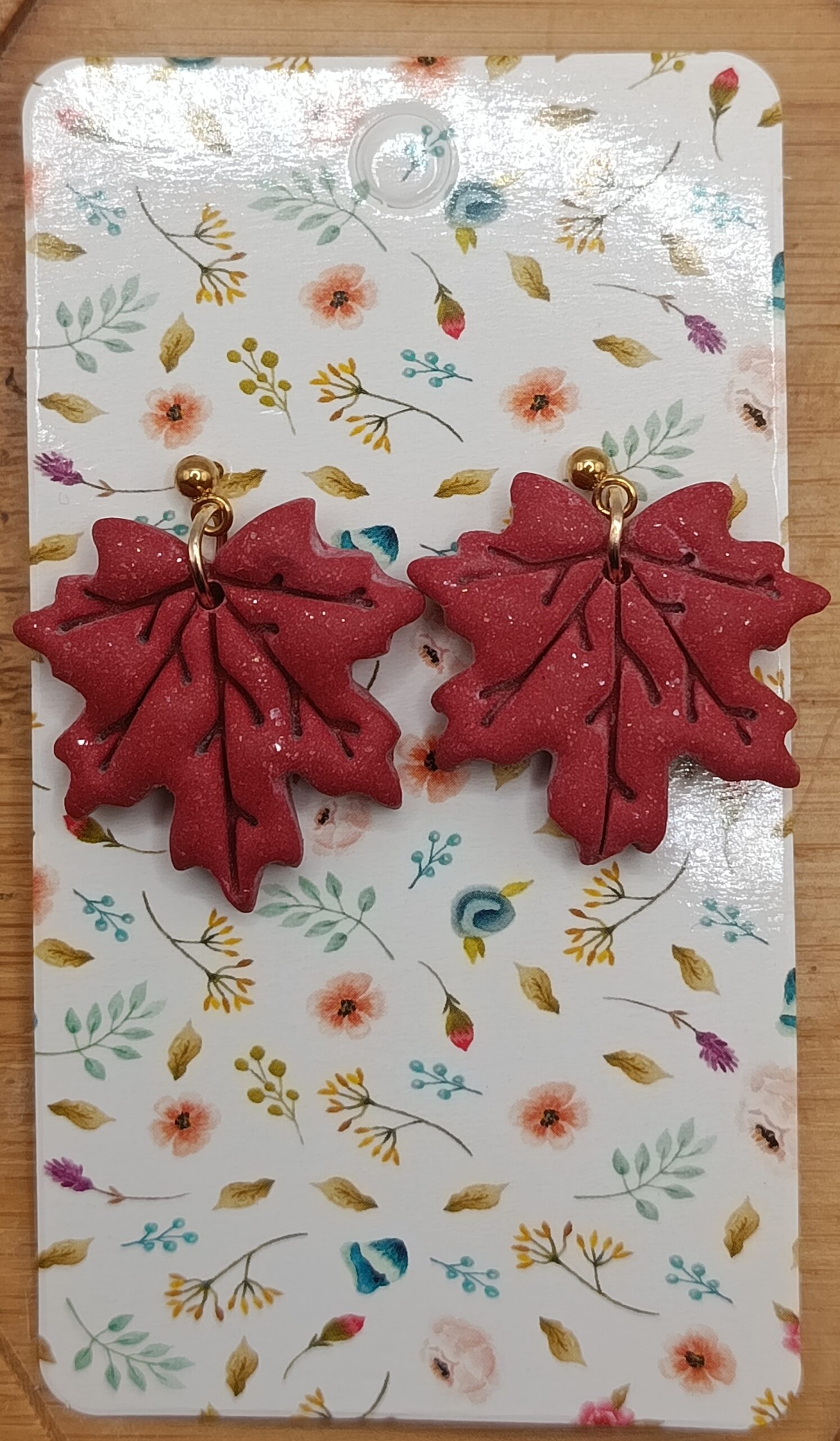 Pendientes de hoja de arce con poste de acero dorado.