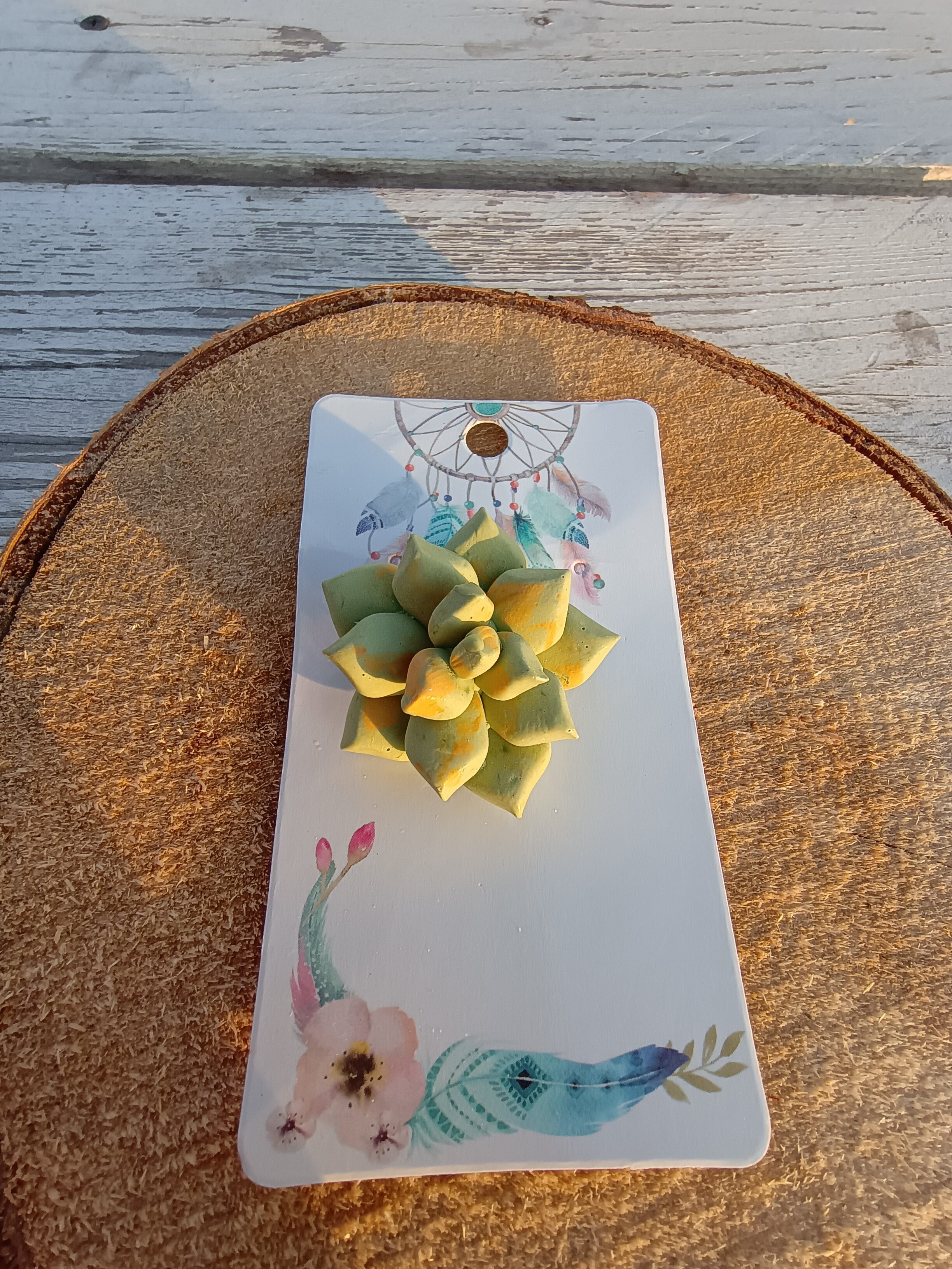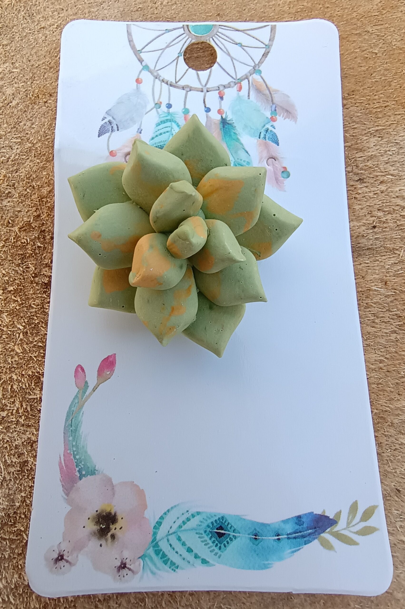 Broche suculento verde y amarillo