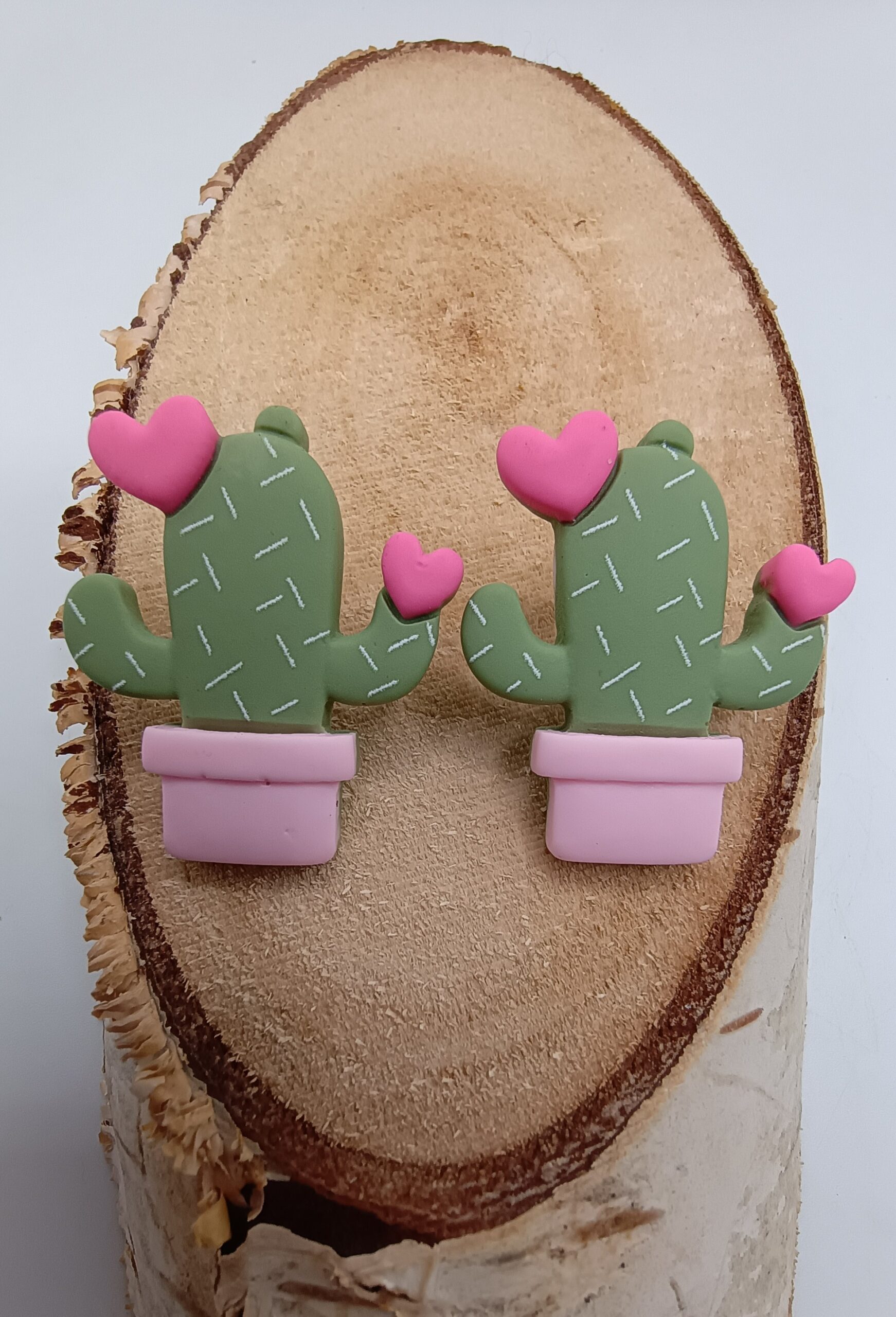 Pendientes cactus corazones en maceta.