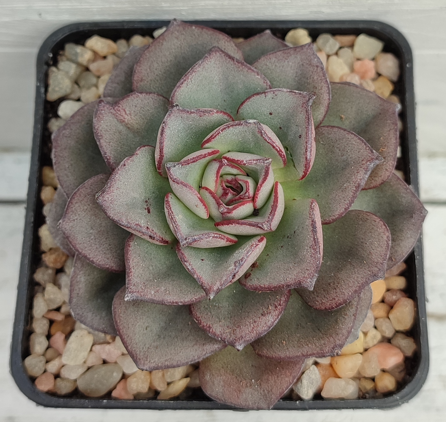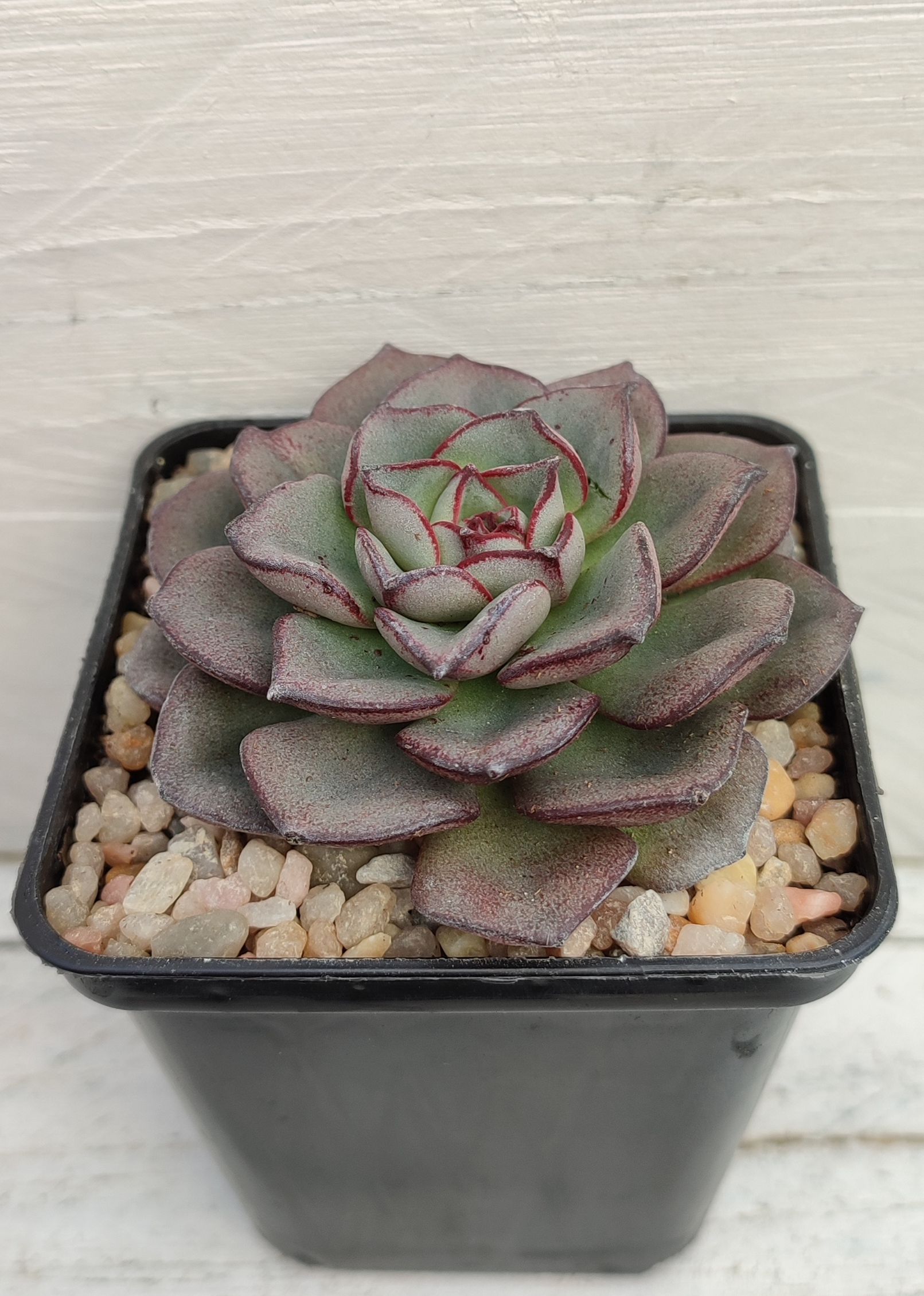 La echeveria morani crece en forma de roseta, con las hojas de color verde con tonos morados en las puntas.